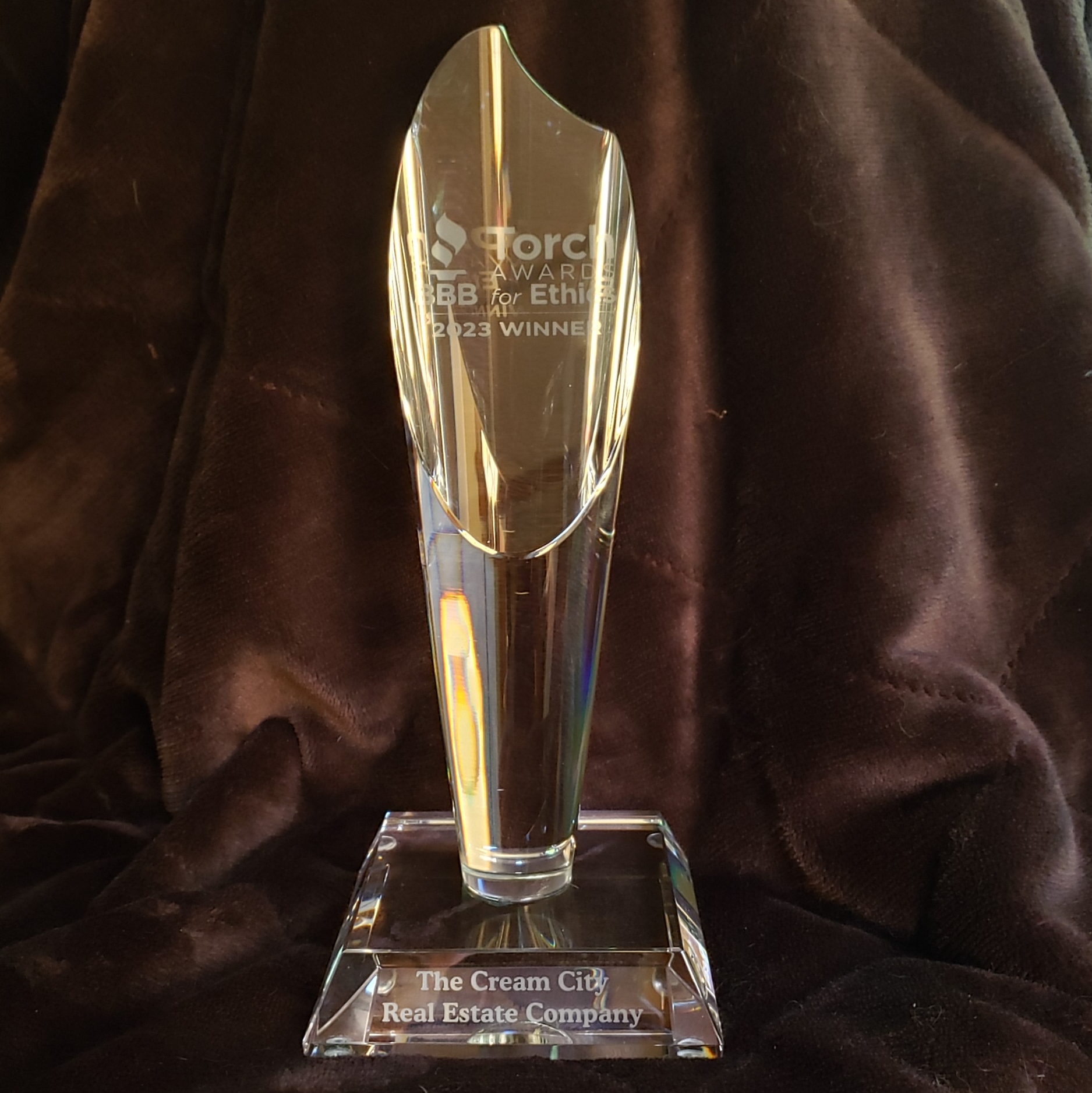 On May 18, 2023 The Cream City Real Estate Company was presented with this year's Better Business Bureau Torch Award for Ethics (Category 1: for companies with 1-10 employees). It is a great honor to be so recognized.